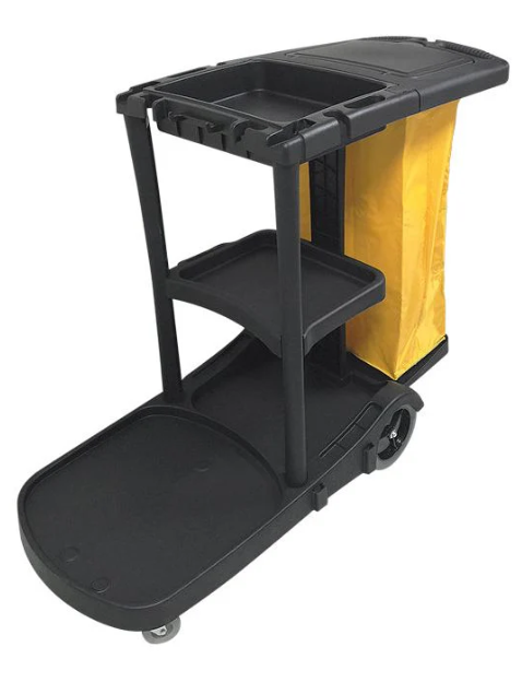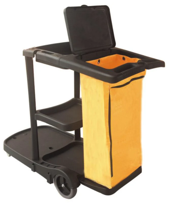 This Filta Utility Cart is ideal for storing and transporting all your cleaning products and equipment. It is lightweight and features wheels for easy mobility and a waste bag that can be used for laundry or rubbish, making it ideal for janitorial use or for use in hotels.