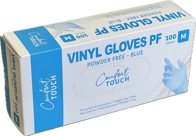 Comfort Touch Blue Vinyl PF Gloves 100/Box - Large